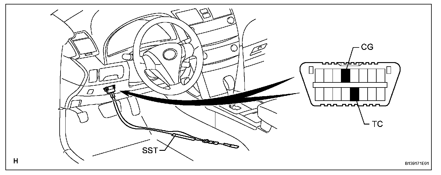 1. Using SST, connect terminals TC and CG of the DLC3.