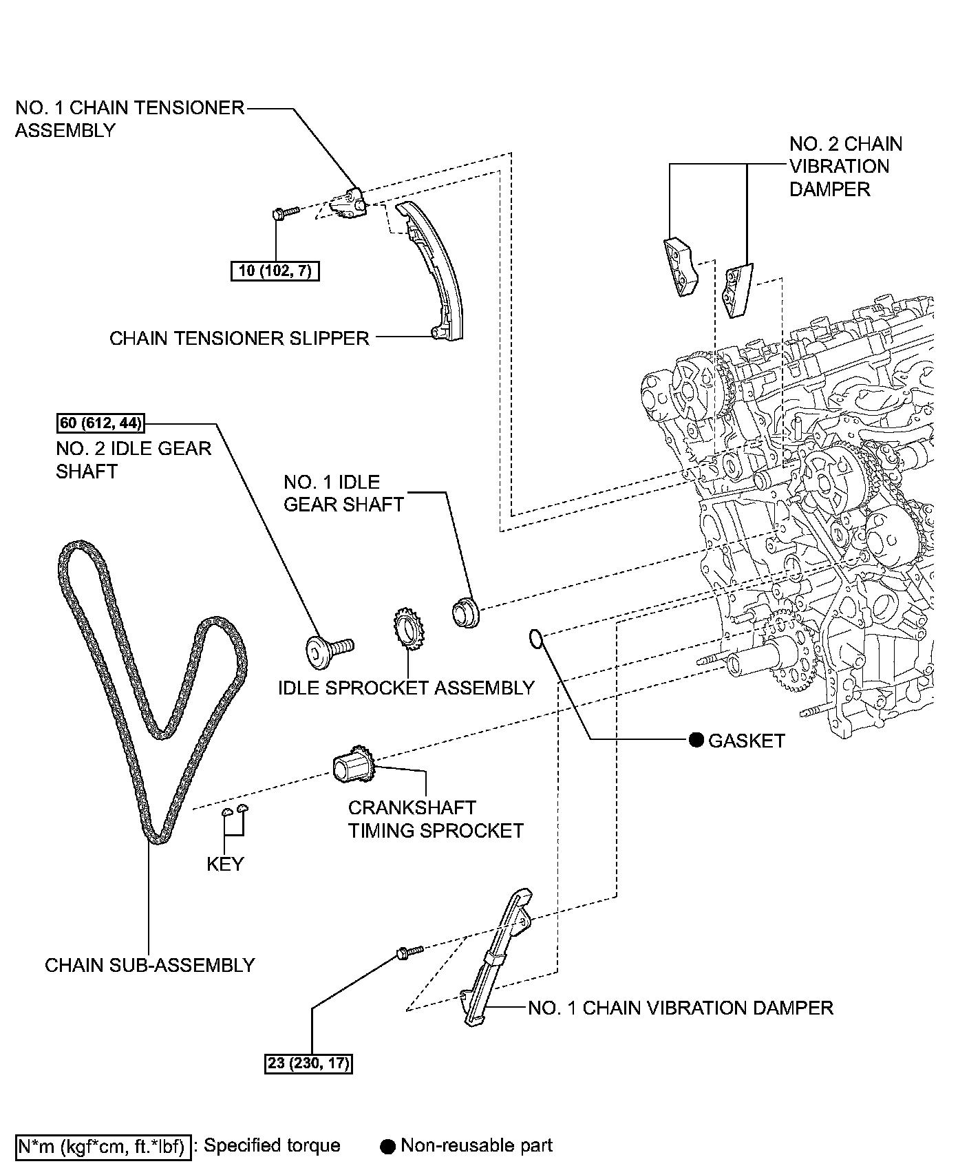 (a) Using a 10 mm hexagon wrench, remove the No. 2 idle gear shaft, sprocket and No. 1 idle gear shaft.