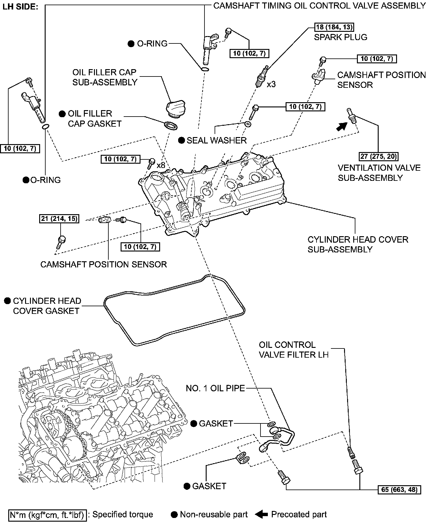 (a) Remove the oil filler cap and gasket.