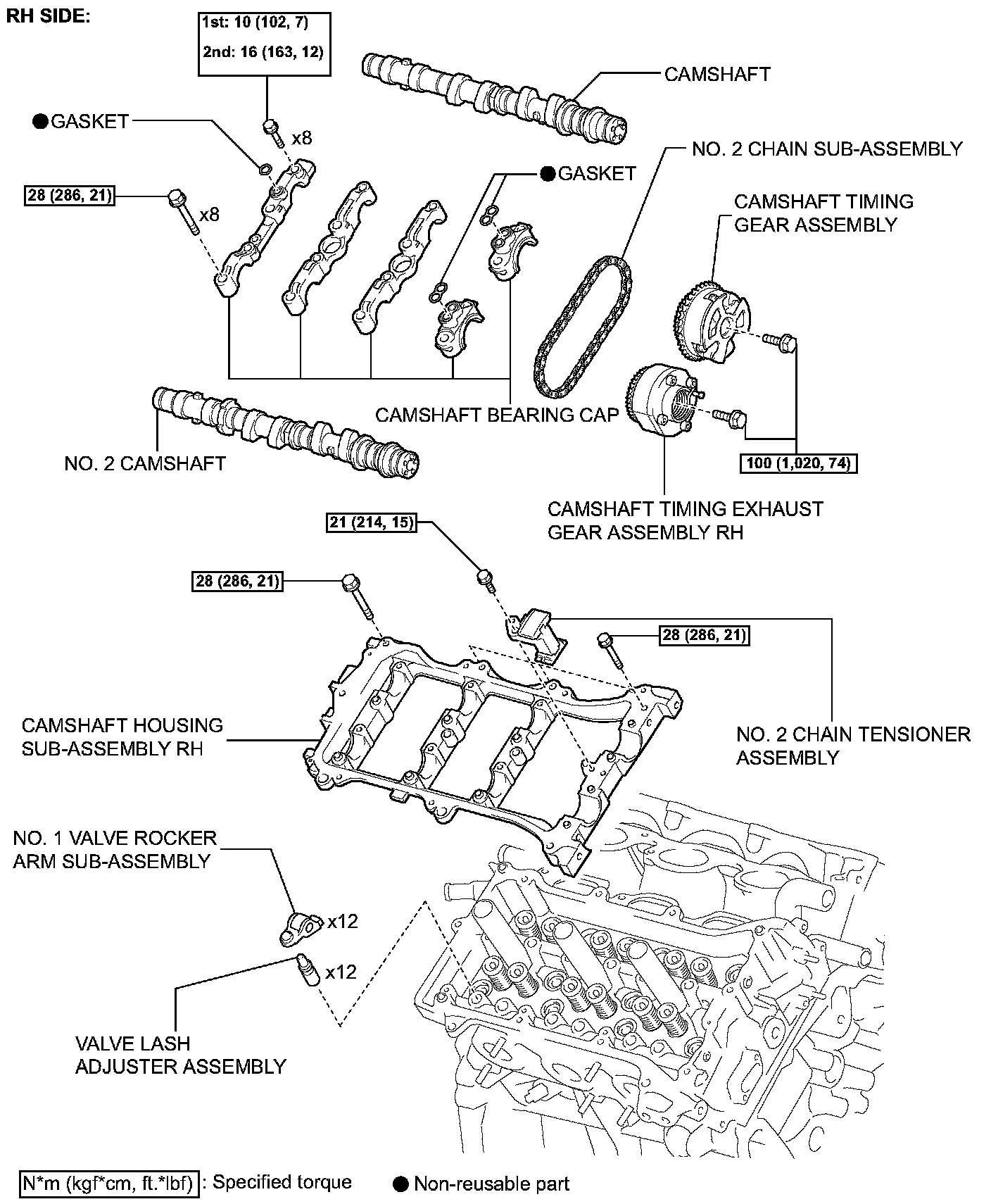 (a) Remove the 12 bolts, seal washer, head cover and gasket.