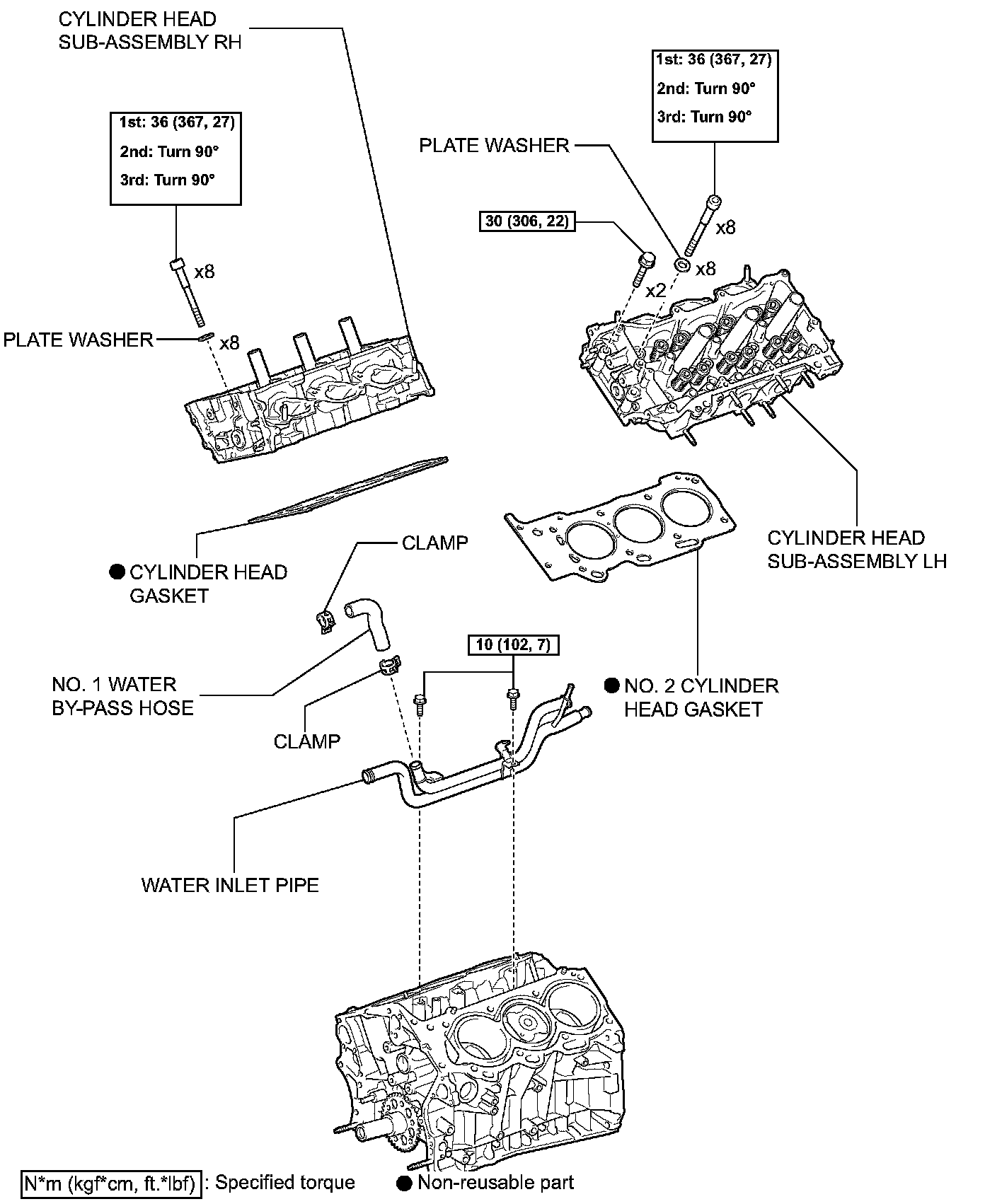 (f) Separate the water by-pass hose No. 1.