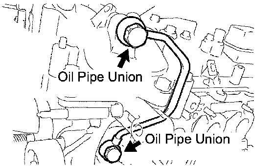 (b) Remove the 2 oil pipe unions and oil pipe.