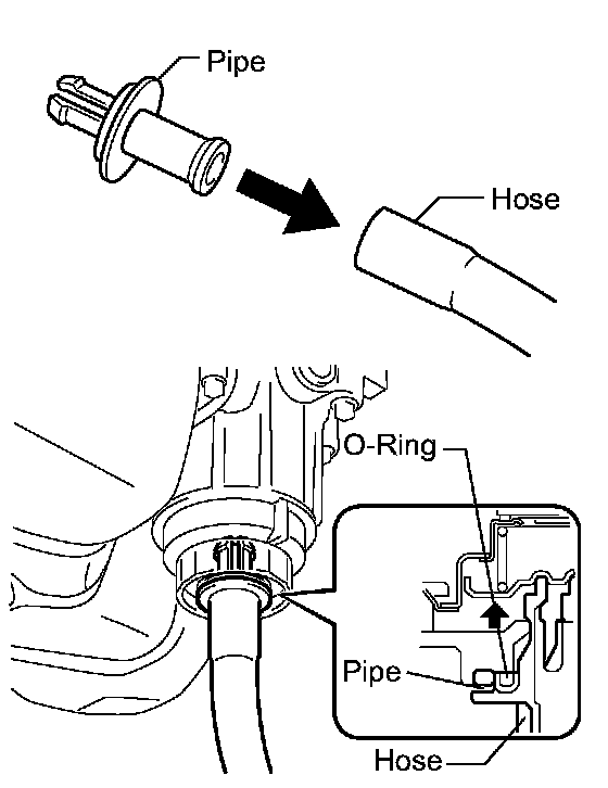 (d) Make sure that the oil is completely drained and remove the pipe and O-ring.