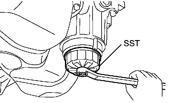 (e) Using SST, remove the oil filter cap.