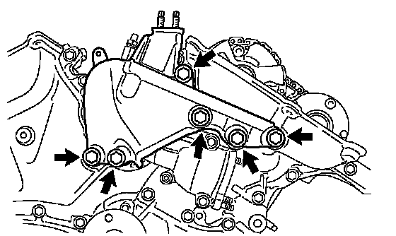 (a) Remove the 6 bolts and engine mounting bracket.