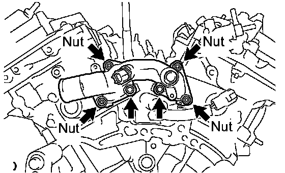 (a) Remove the 2 bolts, 4 nuts and water outlet.