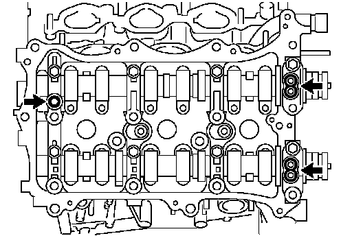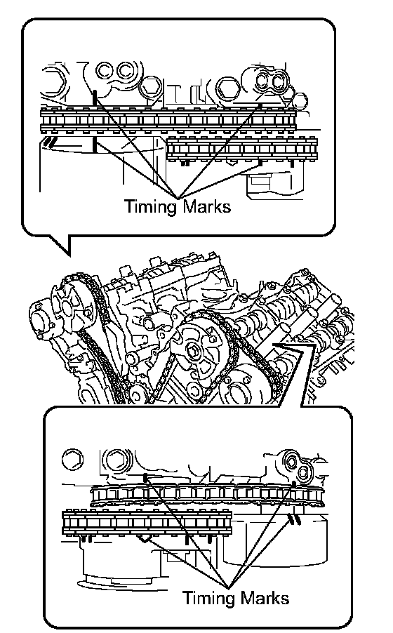 (c) Check that the timing marks of the camshaft timing gears are aligned with the timing marks of the bearing cap as shown in the illustration.