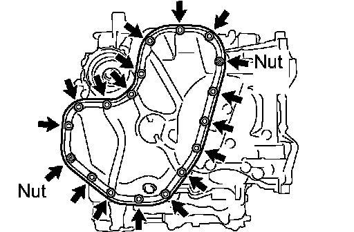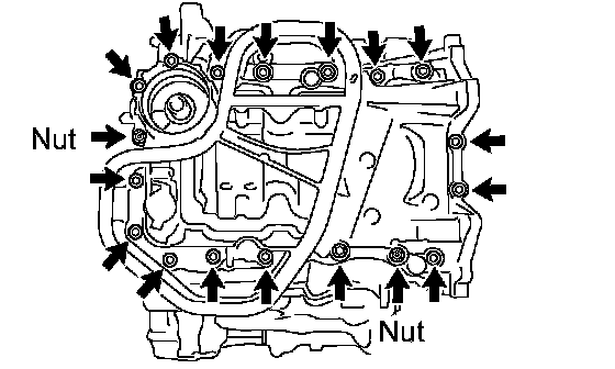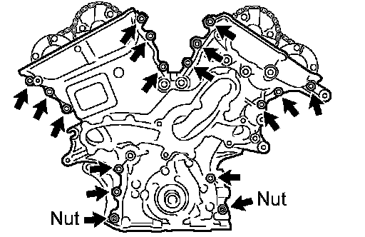 (a) Remove the 15 bolts and 2 nuts as shown in the illustration.