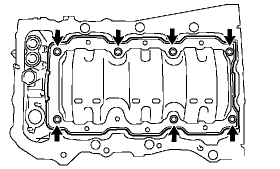 NOTICE: Be careful not to damage the contact surfaces of the oil pans.