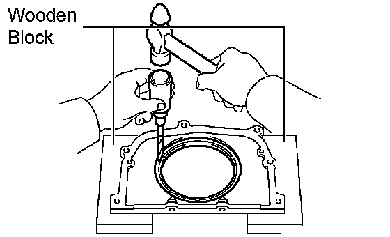 NOTICE: Be careful not to damage the engine rear oil seal retainer.