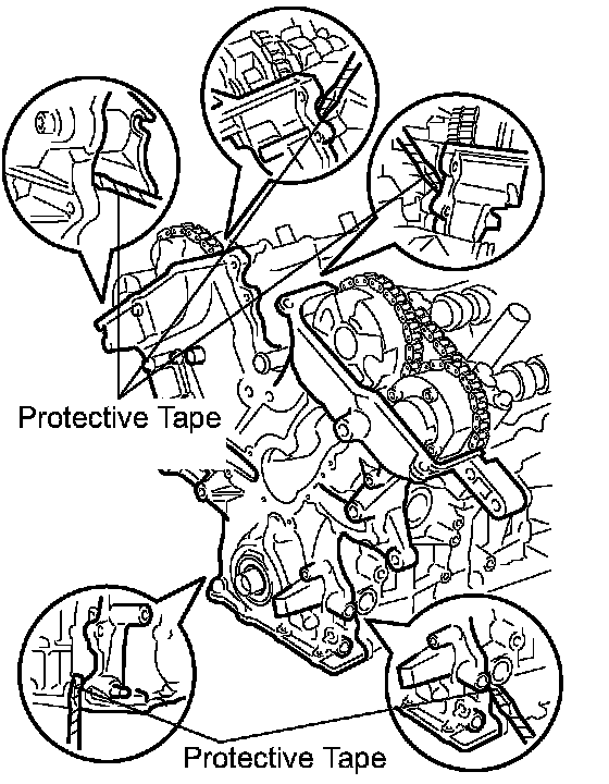 NOTICE: Be careful not to damage the contact surfaces of the cylinder head, cylinder block and chain cover.
