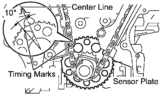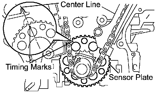 (b) Set the timing mark on the crank angle sensor plate to the RH block bore center line (TDC/compression).