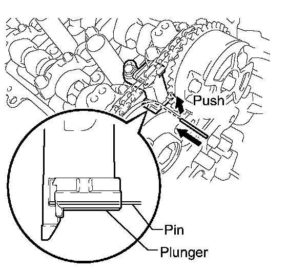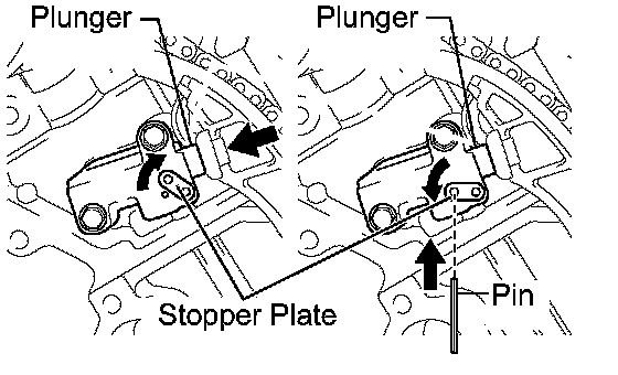 (a) Move the stopper plate upward to release the lock, and push the plunger deep into the tensioner.