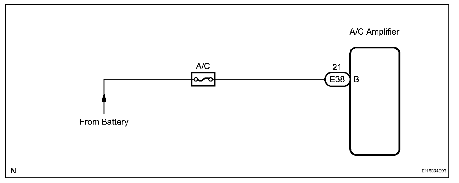 The back-up power source circuit for the A/C amplifier is shown below. Power is supplied even when turning the ignition switch off and is used for diagnostic trouble code memory, etc.