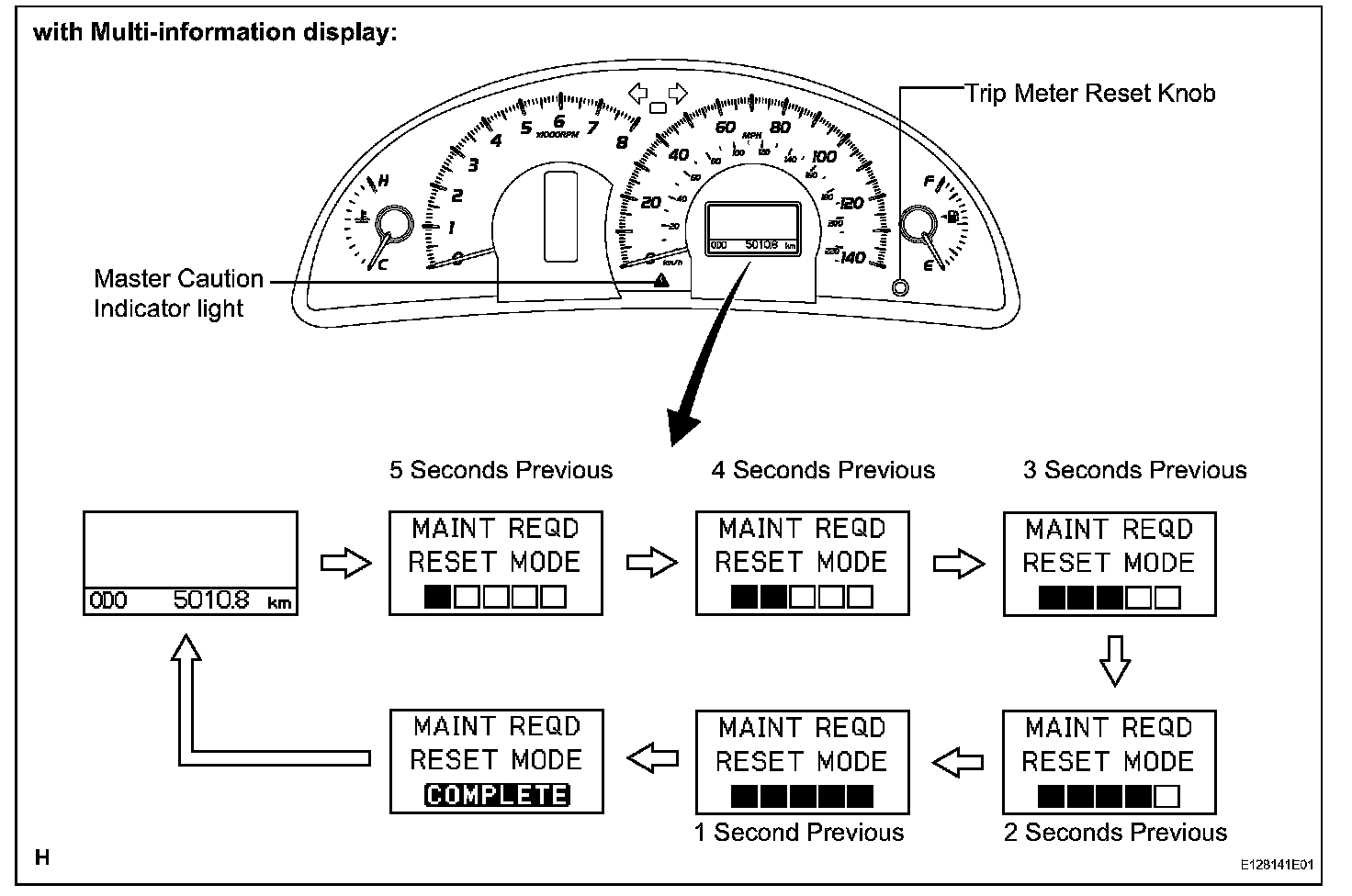 - The multi-information display shows "MAINT REQD RESET MODE".