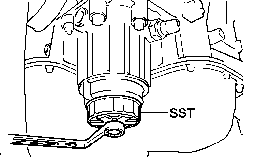(e) Using SST, remove the oil filter cap.