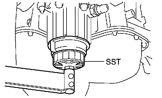 (f) Using SST, install the oil filter cap.