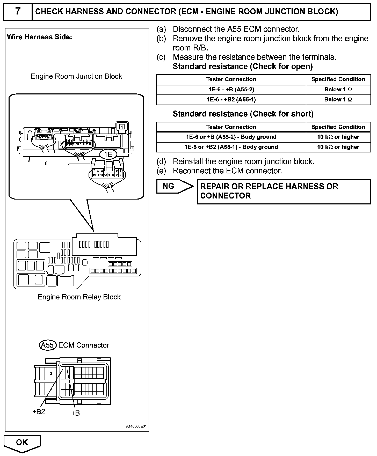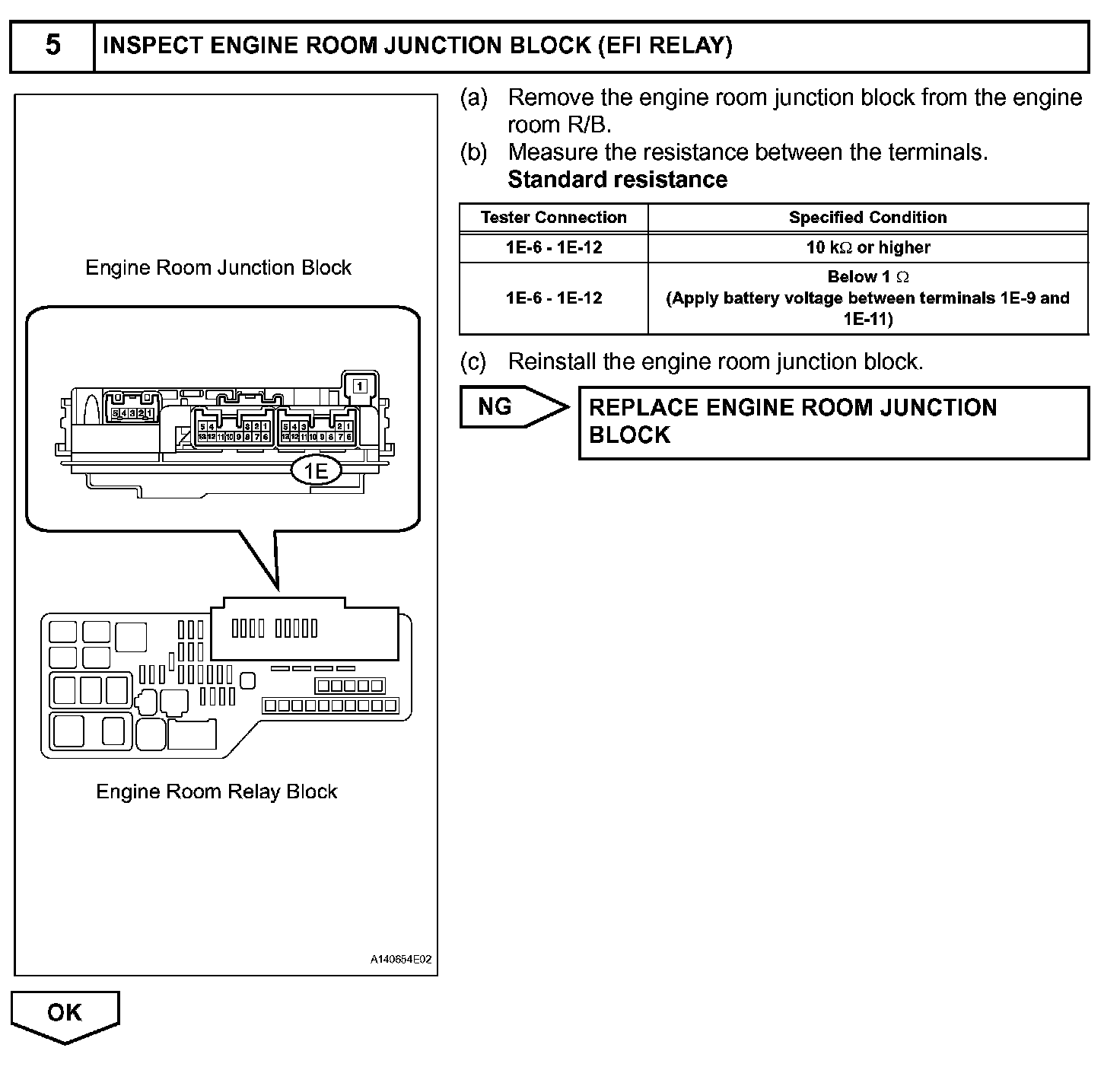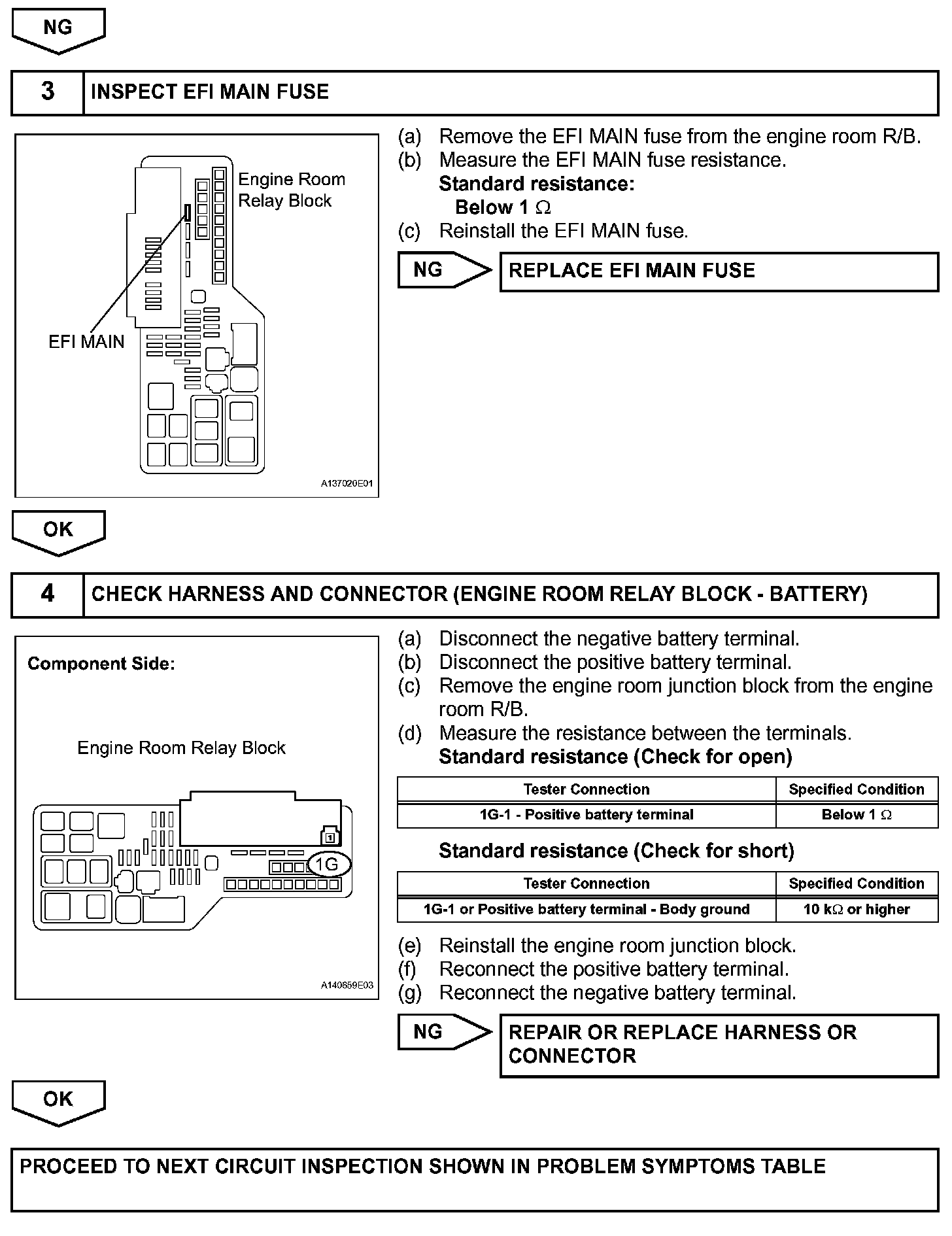When the ignition switch is turned on (IG), voltage from the ECM's MREL terminal applies to the engine room junction block (EFI relay). This causes the contacts of the engine room junction block (EFI relay) to close, which supplies power to terminal +B or +B1 of the ECM.