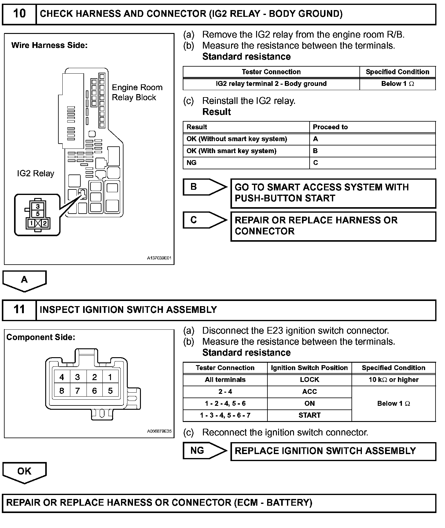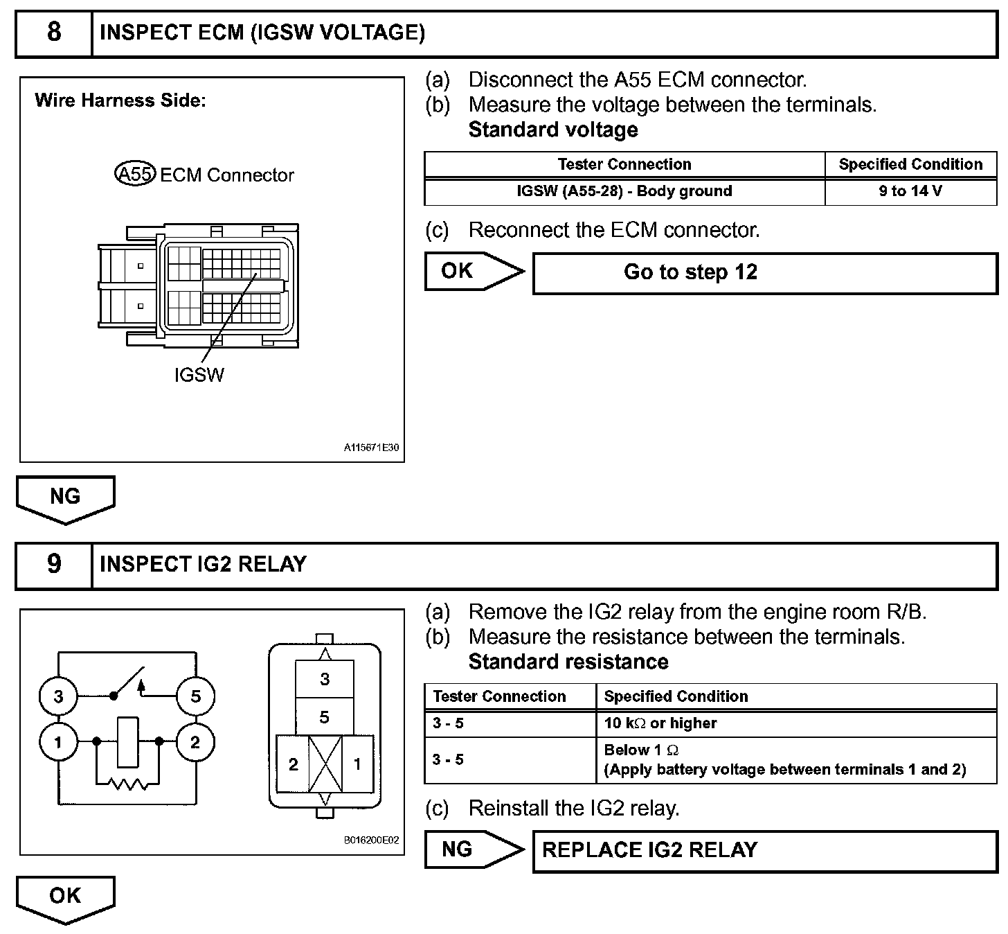 When the ignition switch is turned on (IG), the battery voltage is applied to terminal IGSW of the ECM.