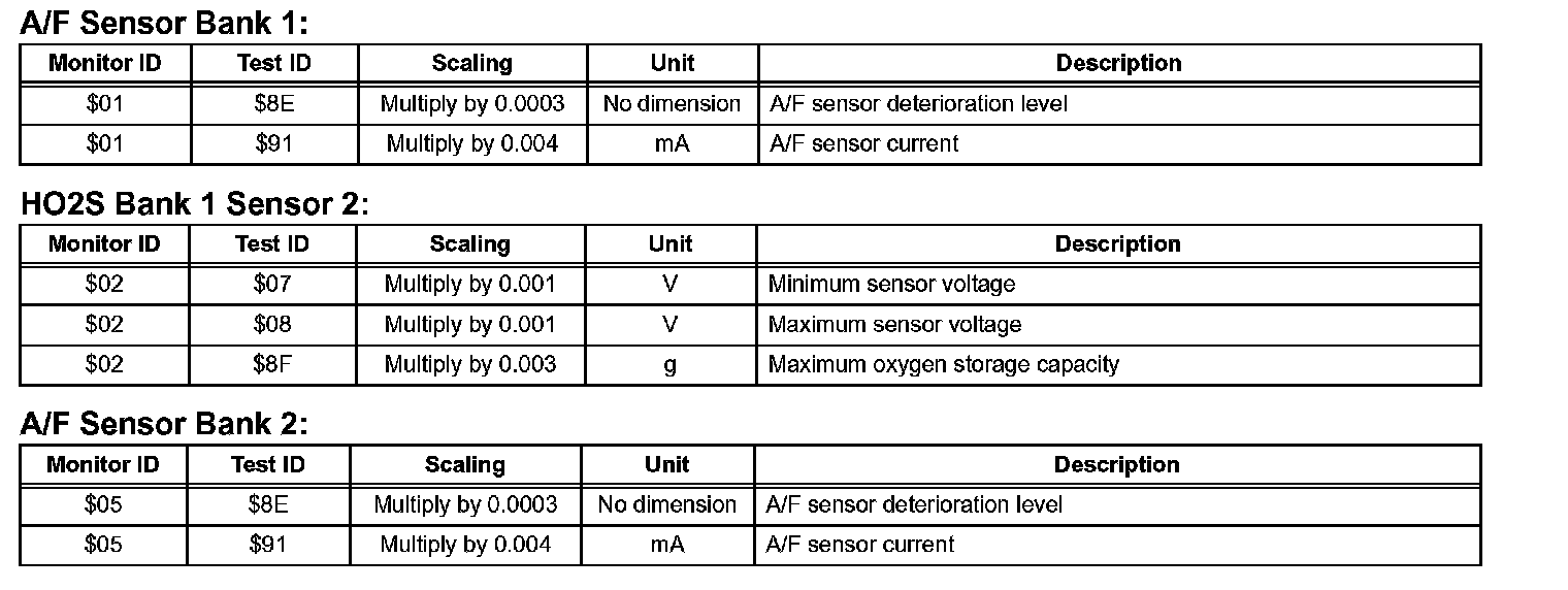 If you use a generic scan tool, multiply the test value by the scaling value listed.