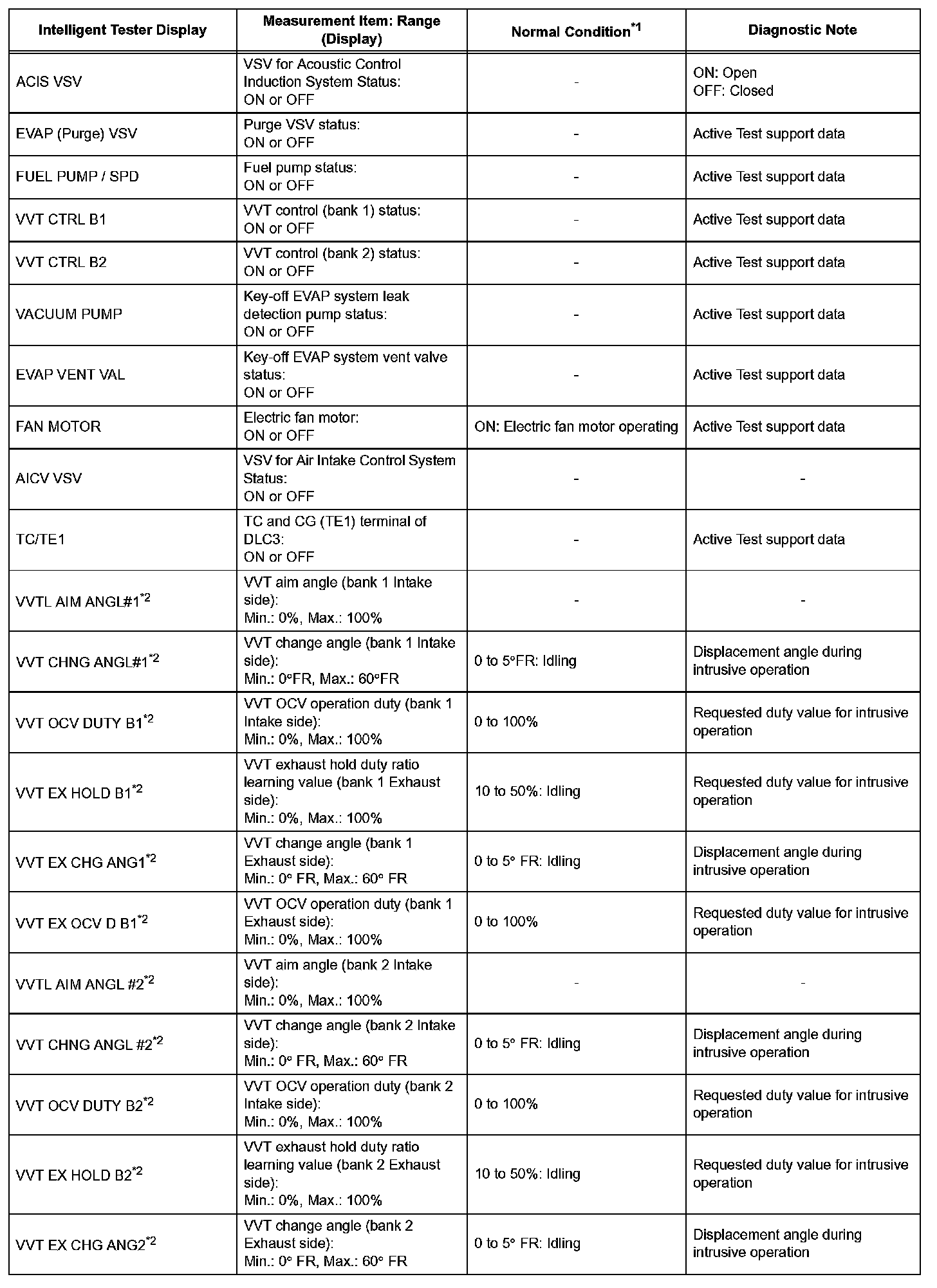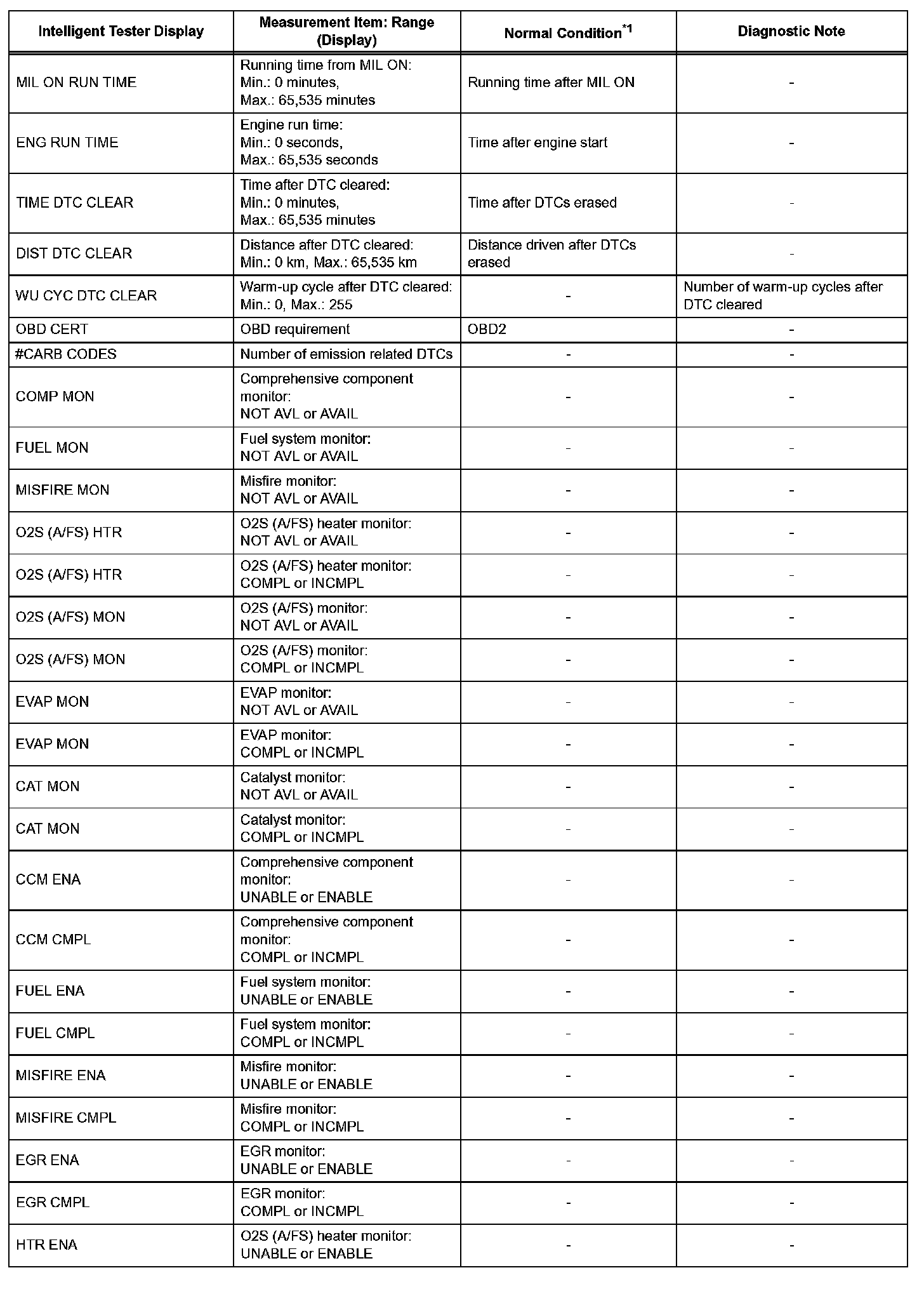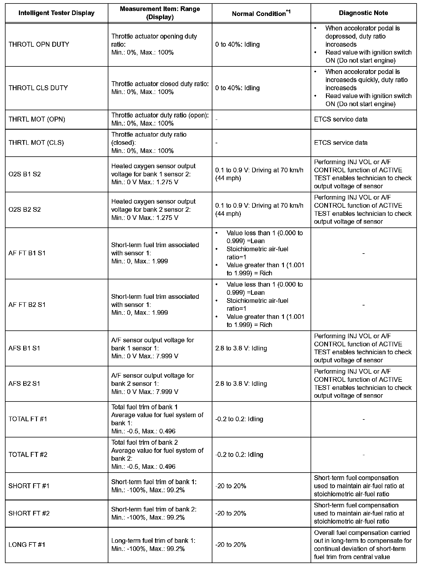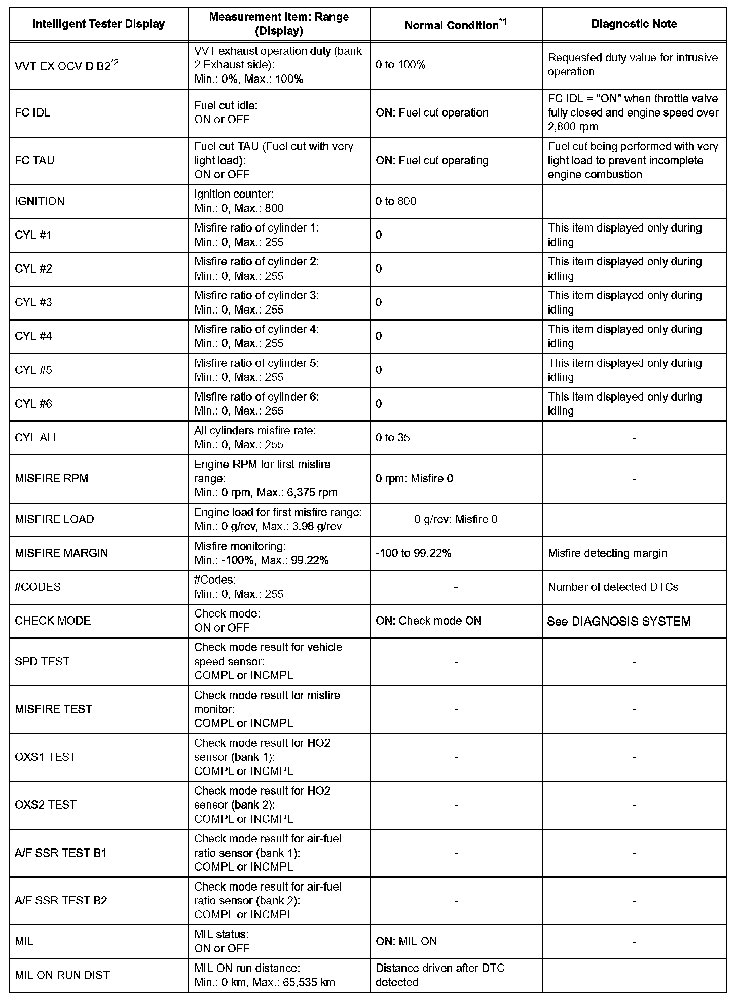 DATA LISTHINT: By reading the DATA LIST displayed on an intelligent tester, you can check values, including those of the switches, sensors, and actuators, without removing any parts. Reading the DATA LIST as the first step in troubleshooting is one method of shortening diagnostic time.