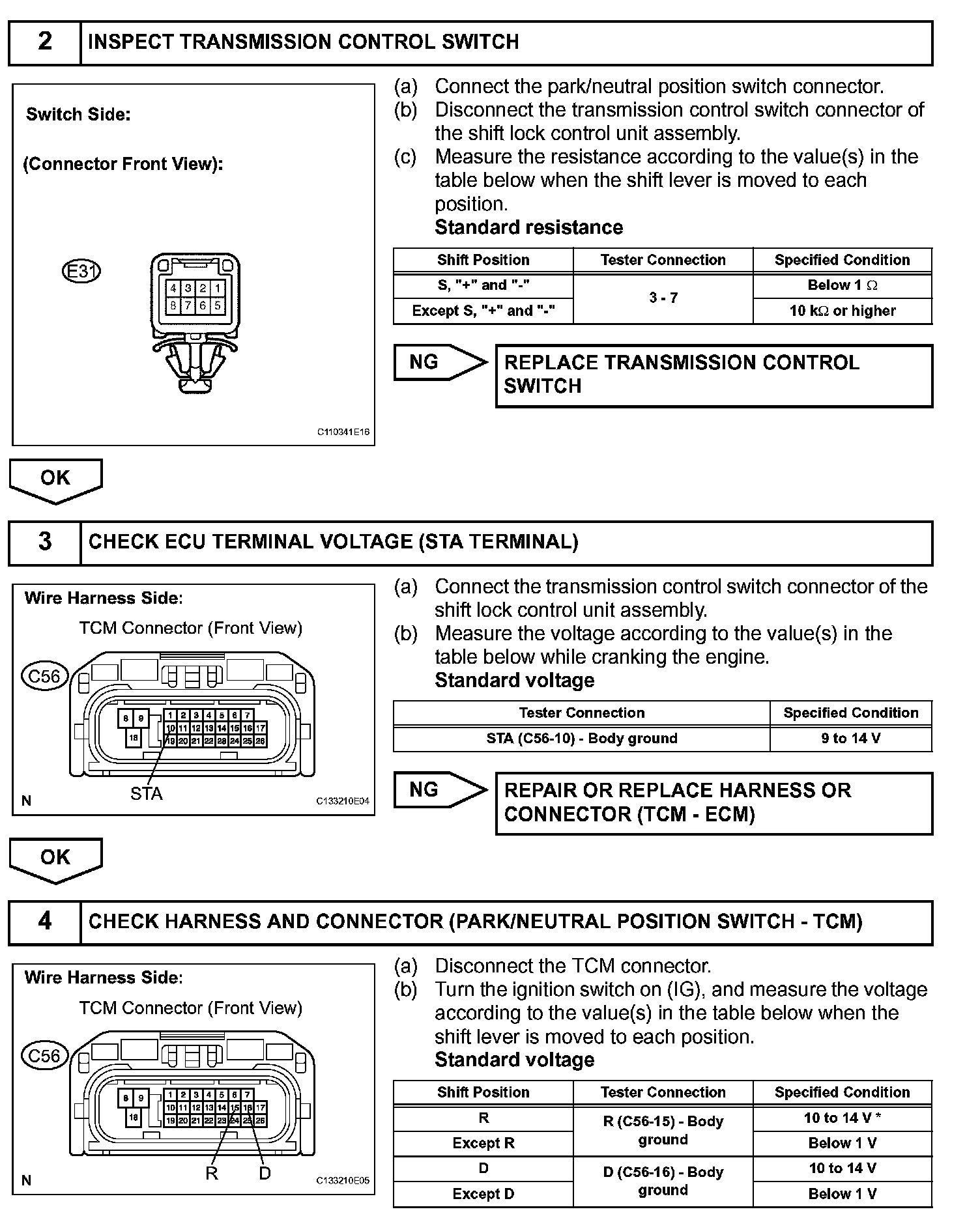The park/neutral position switch detects the shift lever position and sends signals to the TCM.