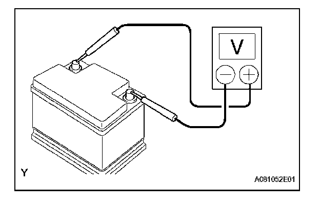 c. Measure the battery voltage between the negative (-) and positive (+) terminals of the battery.