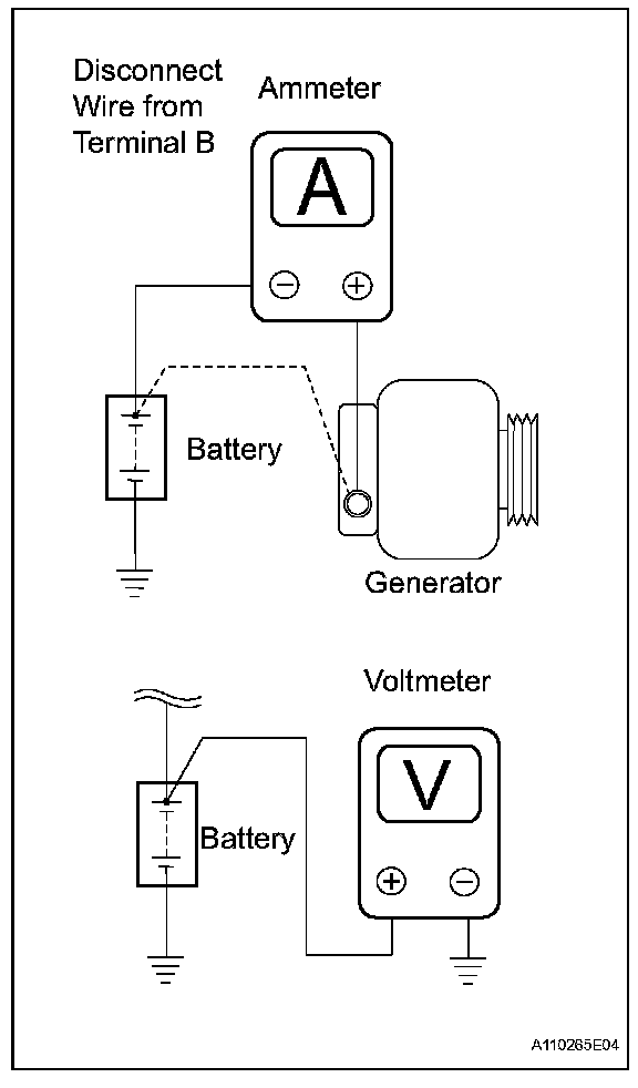 1. Disconnect the wire from terminal B of the generator and connect it to the negative (-) lead of the ammeter.