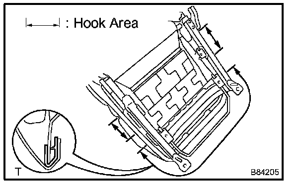 b. Install the seat cushion cover (with pad) to the seat adjuster by using hog ring pliers to attach new hog rings and hooks.
