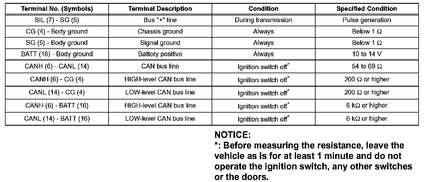 If the result is not as specified, the DLC3 may have a malfunction. Repair or replace the harness and connector.