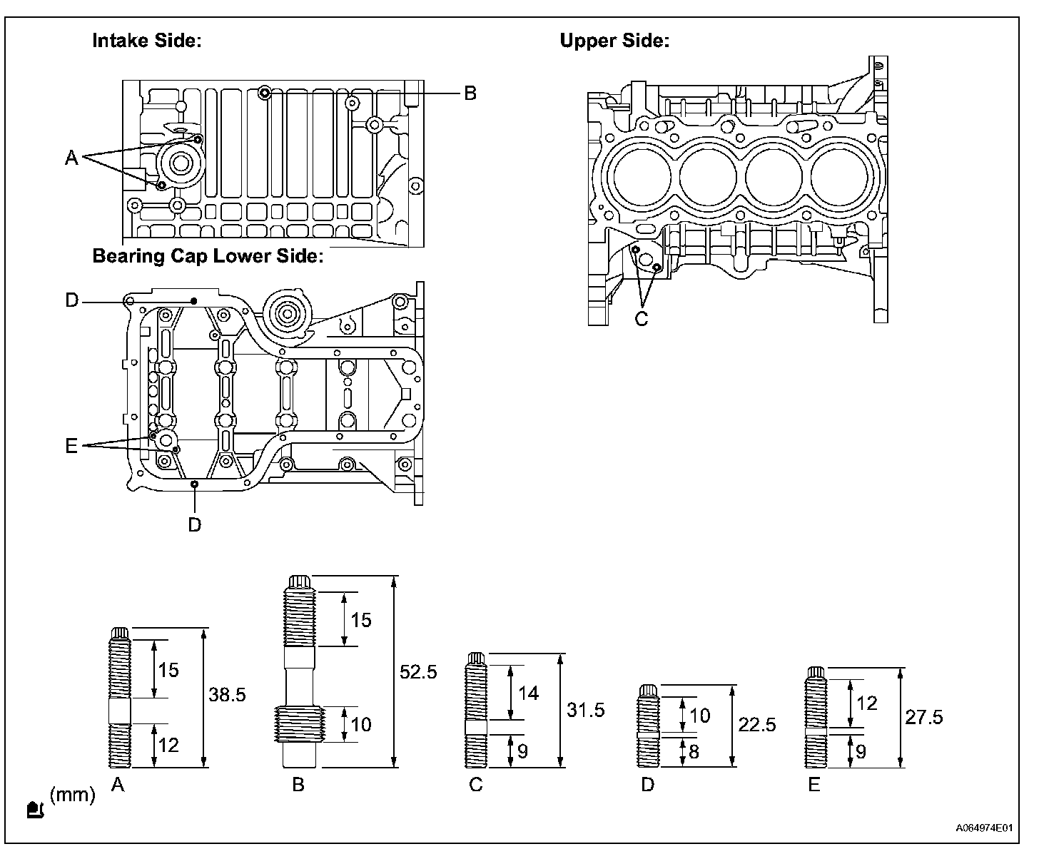 (a) Using "TORX" socket wrenches E5 and E7, install 9 stud bolts into the cylinder block.