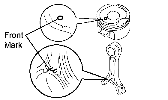 (c) Align the front mark on the piston with the one on the connecting rod, then push in the piston pin with your thumb.