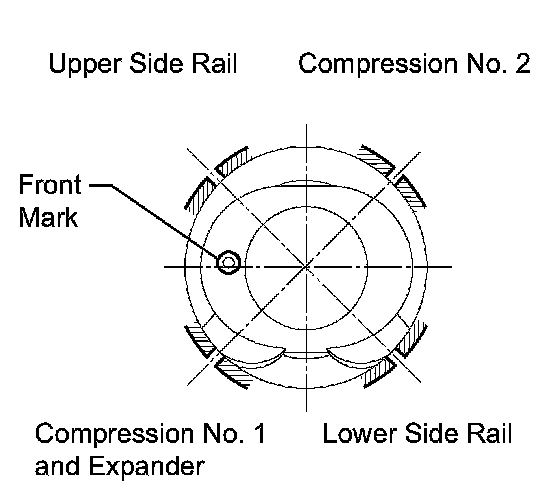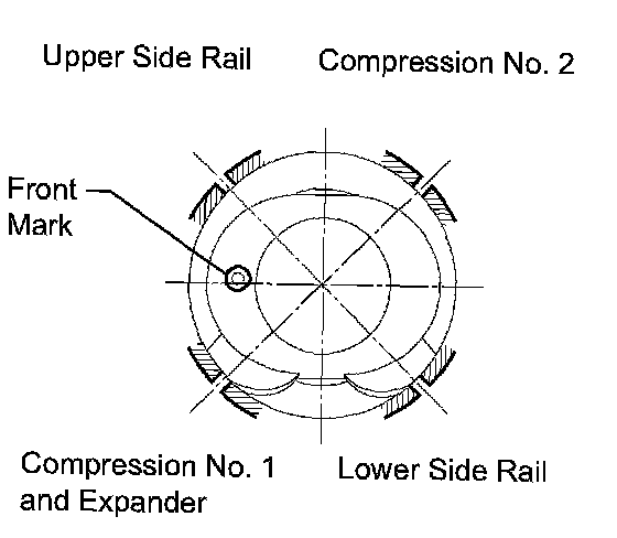 HINT: If reusing the piston rings, install them onto the matched pistons with the surfaces facing correctly.