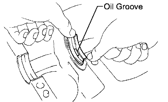(a) Install the upper bearing with an oil groove onto the cylinder block.
