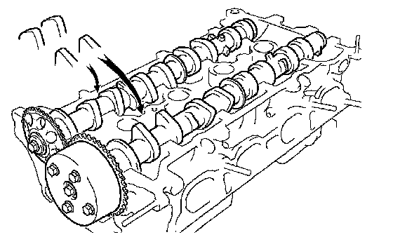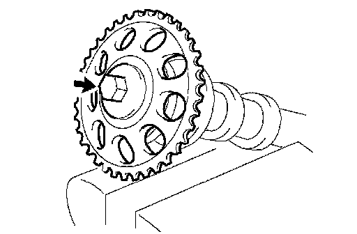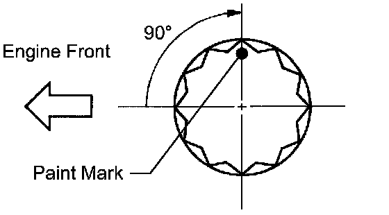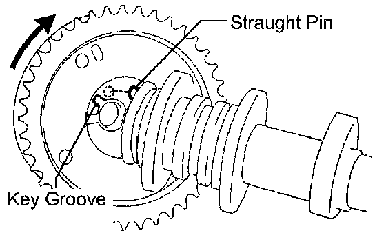 CAUTION: Be sure not to turn the camshaft timing gear to the retard angle side (the right angle).