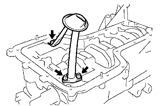 (a) Install the oil strainer with the 2 nuts and bolt.