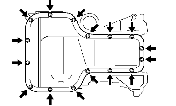 ^ Install the oil pan within 3 minutes of applying seal packing.
