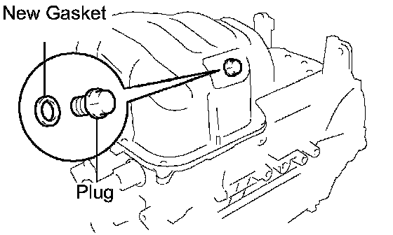 (a) Place a new gasket on the oil pan drain plug, then install it onto the oil pan.