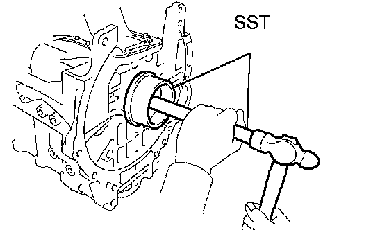 (b) Using SST and a hammer, tap the new oil seal in until its surface is flush with the rear oil seal retainer edge.