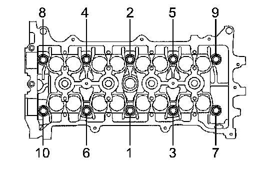 (e) Retighten the cylinder head bolts by 90° in the sequence order shown.