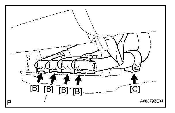 c. Install the wire harness clamp [C].
