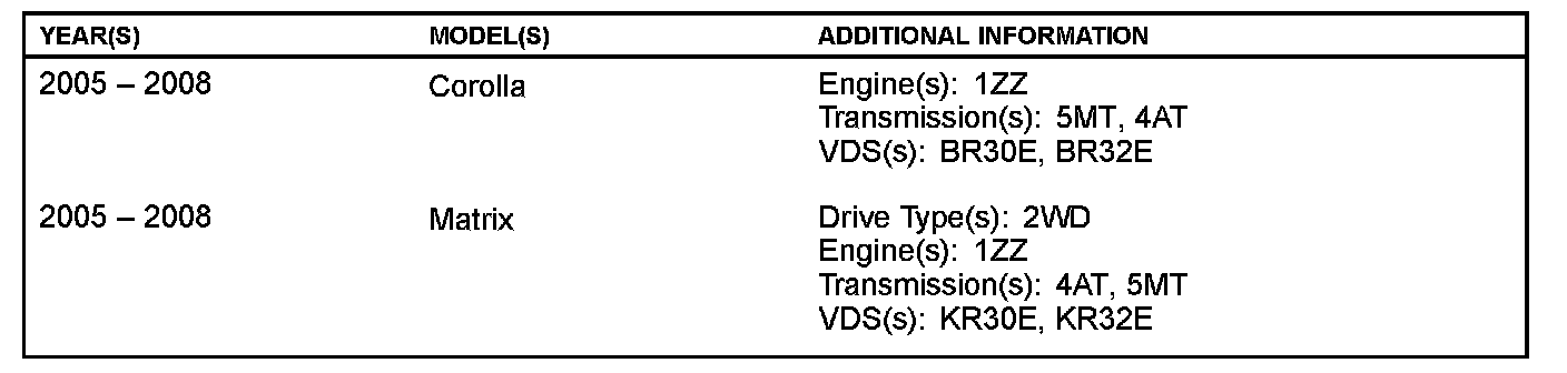 2005 - 2007 model year Corolla/Matrix vehicles are NOT compatible with 2008 model year ECMs.