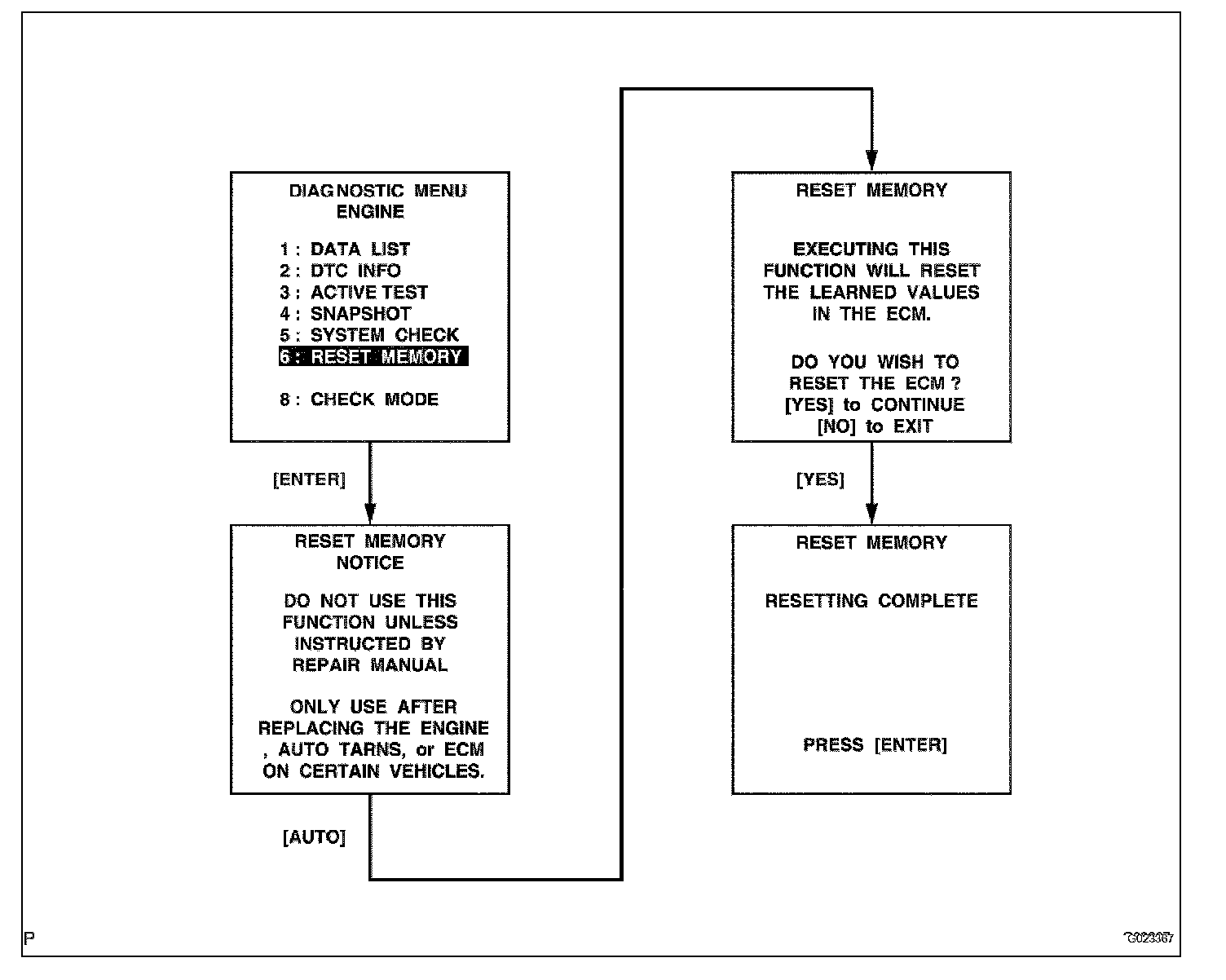 ^ Perform the RESET MEMORY (AT initialization) when replacing the automatic transaxle assembly, engine assembly or ECM.