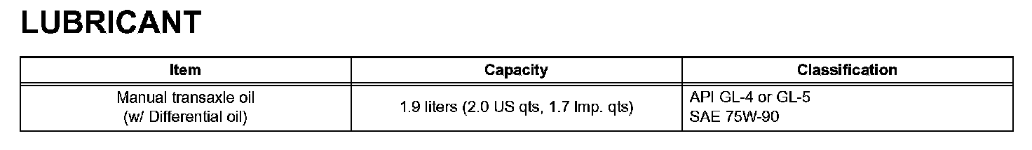 Manual Transaxle - Lubricant: