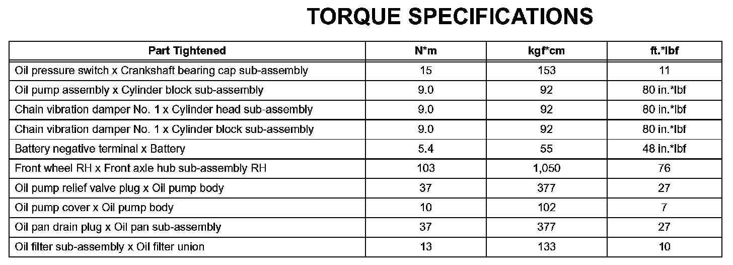 Lubrication - Torque Specifications: