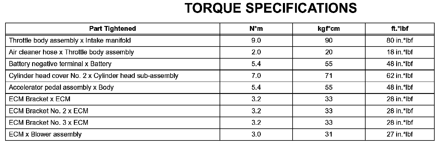 Engine Control System - Torque Specifications: