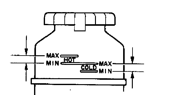 HINT: Check that the fluid level is within the HOT LEVEL range on the reservoir cap. If the fluid is cold, check that it is within the COLD LEVEL range.