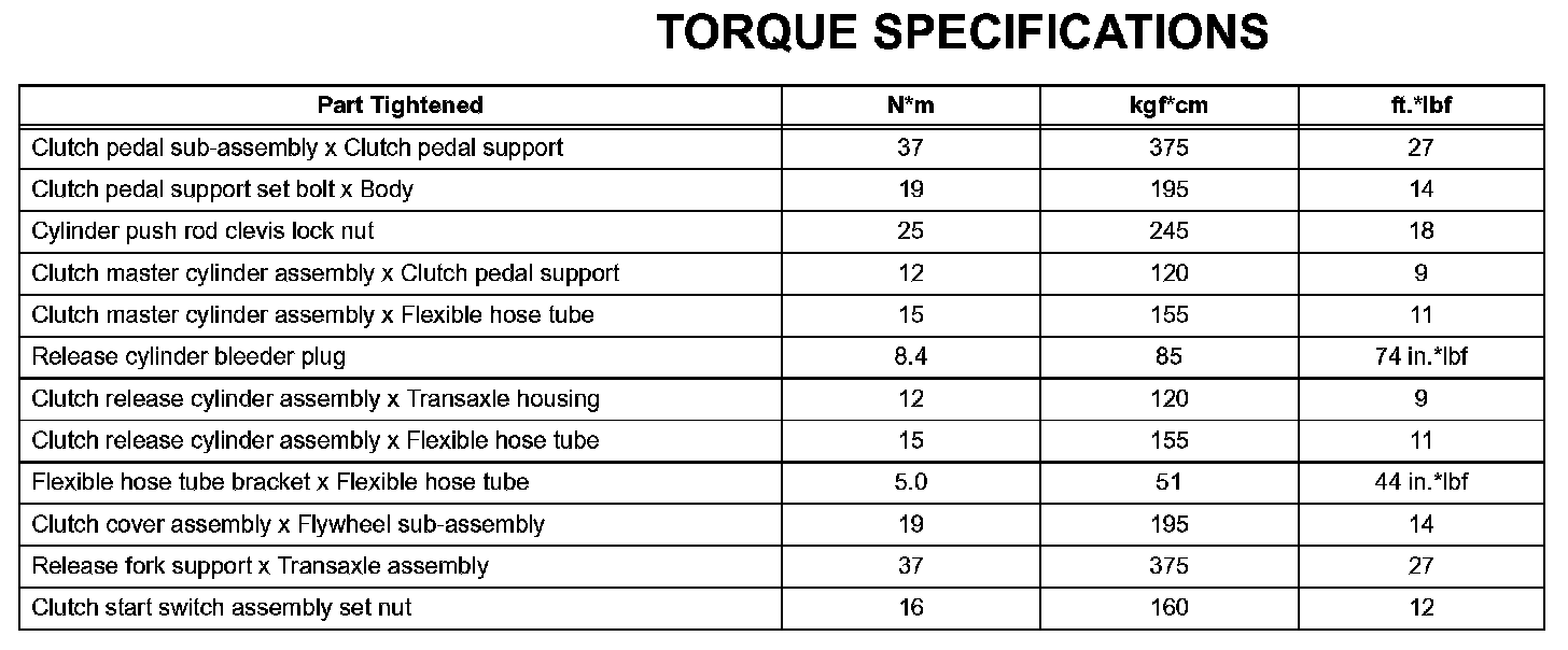 Clutch - Torque Specifications: