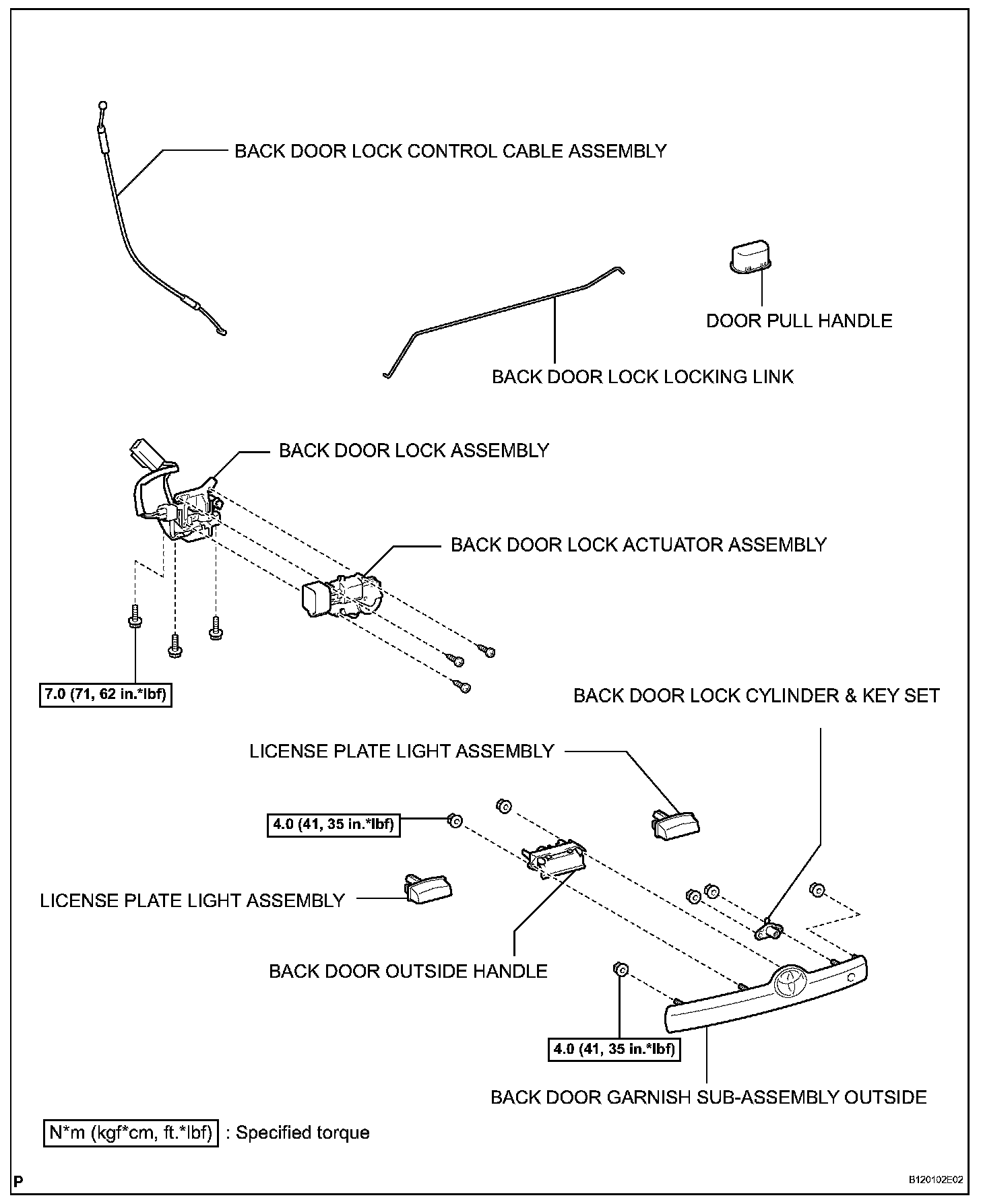 Torque: 7.0 N.m (71 kgf.cm, 62 in.lbf)