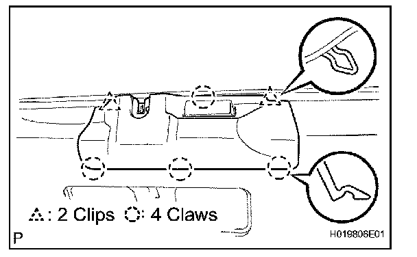 a. Engage the 2 clips and 4 claws. Install the back door lock cover.